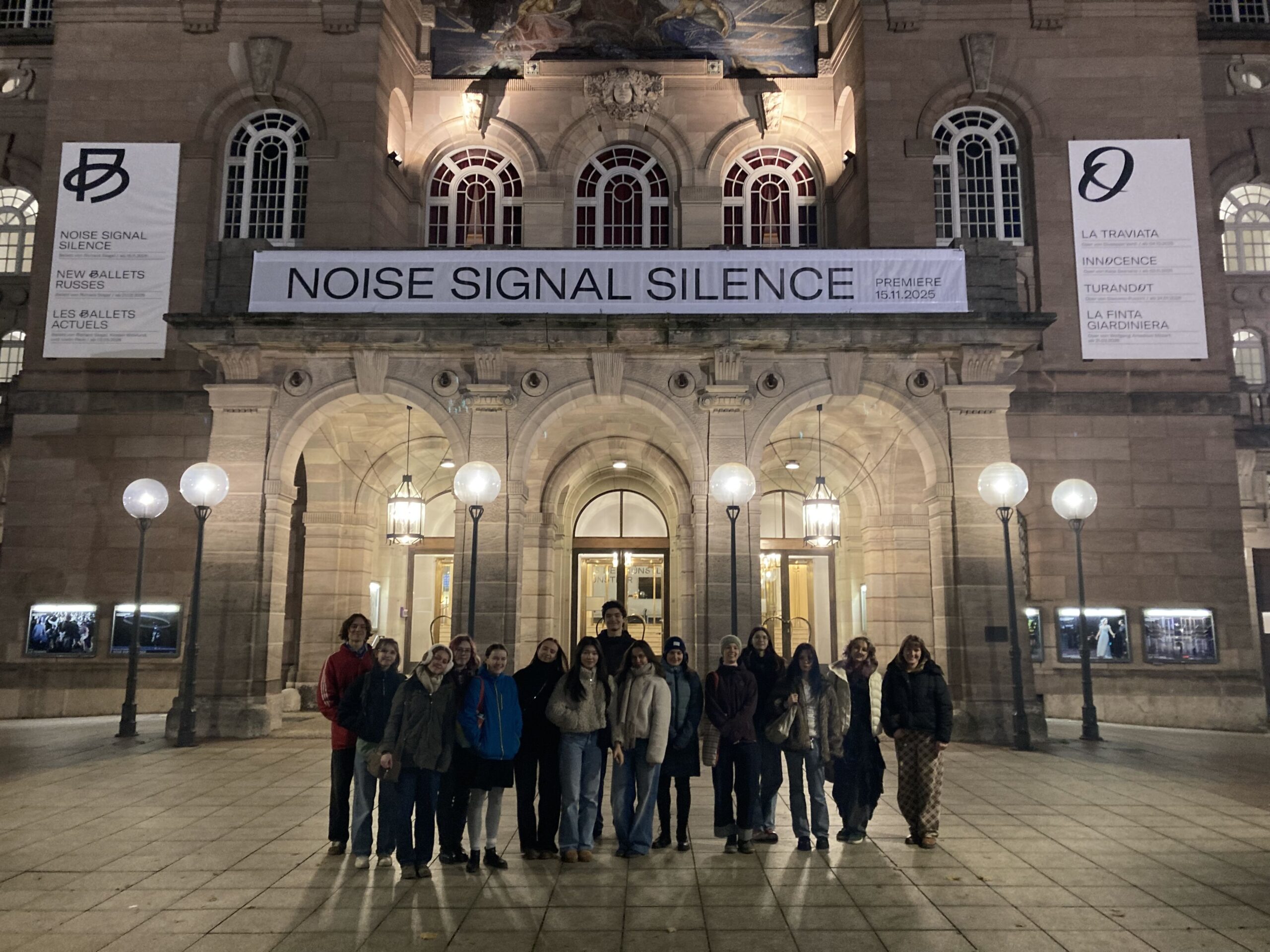Ein Musical für Kindergartenkinder zu verfassen hat sich das derzeitige P-Seminar Musik zur Aufgabe gemacht. Welche Berufsfelder der Musiktheaterbetrieb mit sich bringt, erschloss sich den Schülerinnen und Schülern der Gruppe im Rahmen einer Exkursion am 21. November 2025. Im Staatstheater Nürnberg konnte der Kurs einen Blick hinter die Kulissen werfen und sich beim Besuch der hochgelobten Inszenierung von „La Cage aus Folles“ inspirieren lassen.