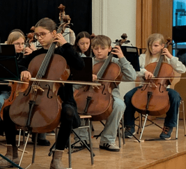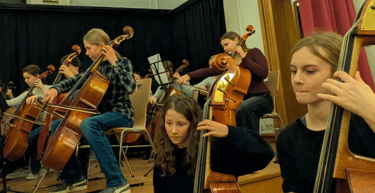Nach einer Stunde voller Melodien aus Klassik und Film nahmen alle Anwesenden die Freude des gemeinsamen Musizierens auf den berühmten vier Saiten der Geigen, Violen, Celli und Kontrabässe mit nach Hause. Das CEG kann sich größter Streicher-Mengen und bester Qualität erfreuen.