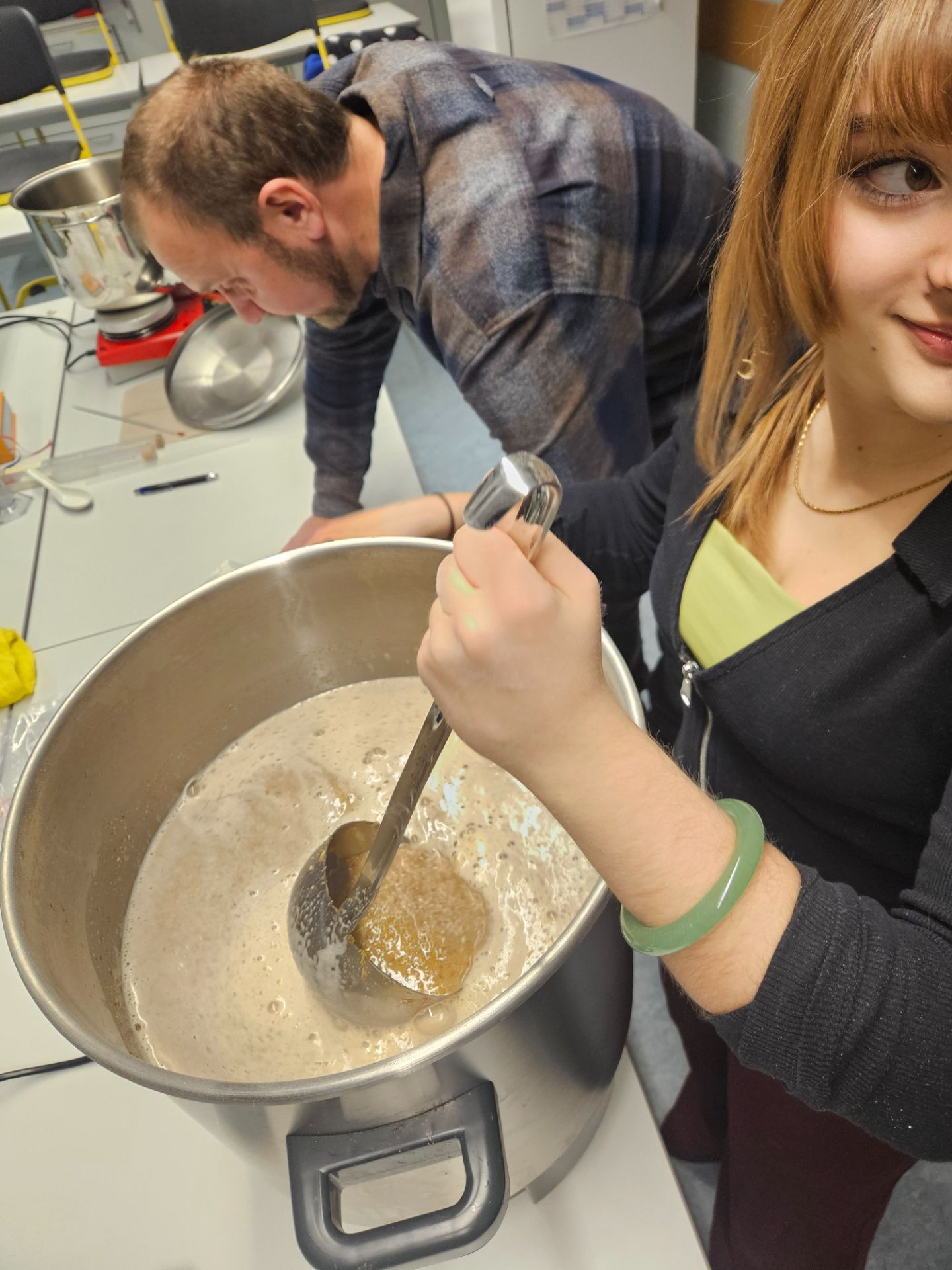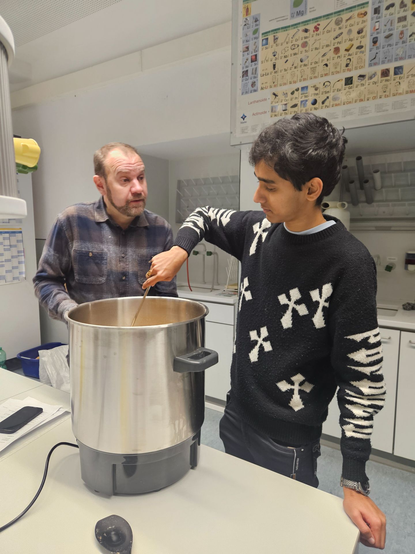 Die Schülerinnen und Schüler des P-Seminars thematisierten zusammen mit Herrn Achatz, wie Enzyme beim Maischen Stärke in Zucker umwandeln, wie Hefen den daraus entstandenen Traubenzucker vergären und warum Temperatur und pH-Wert über den Geschmack des späteren Bieres entscheiden. Durch die Verbindung von Theorie und Praxis entstand ein lebendiger Einblick in die Welt der Biochemie – und ein Beitrag zum Verständnis regionaler Braukultur im naturwissenschaftlichen Kontext.