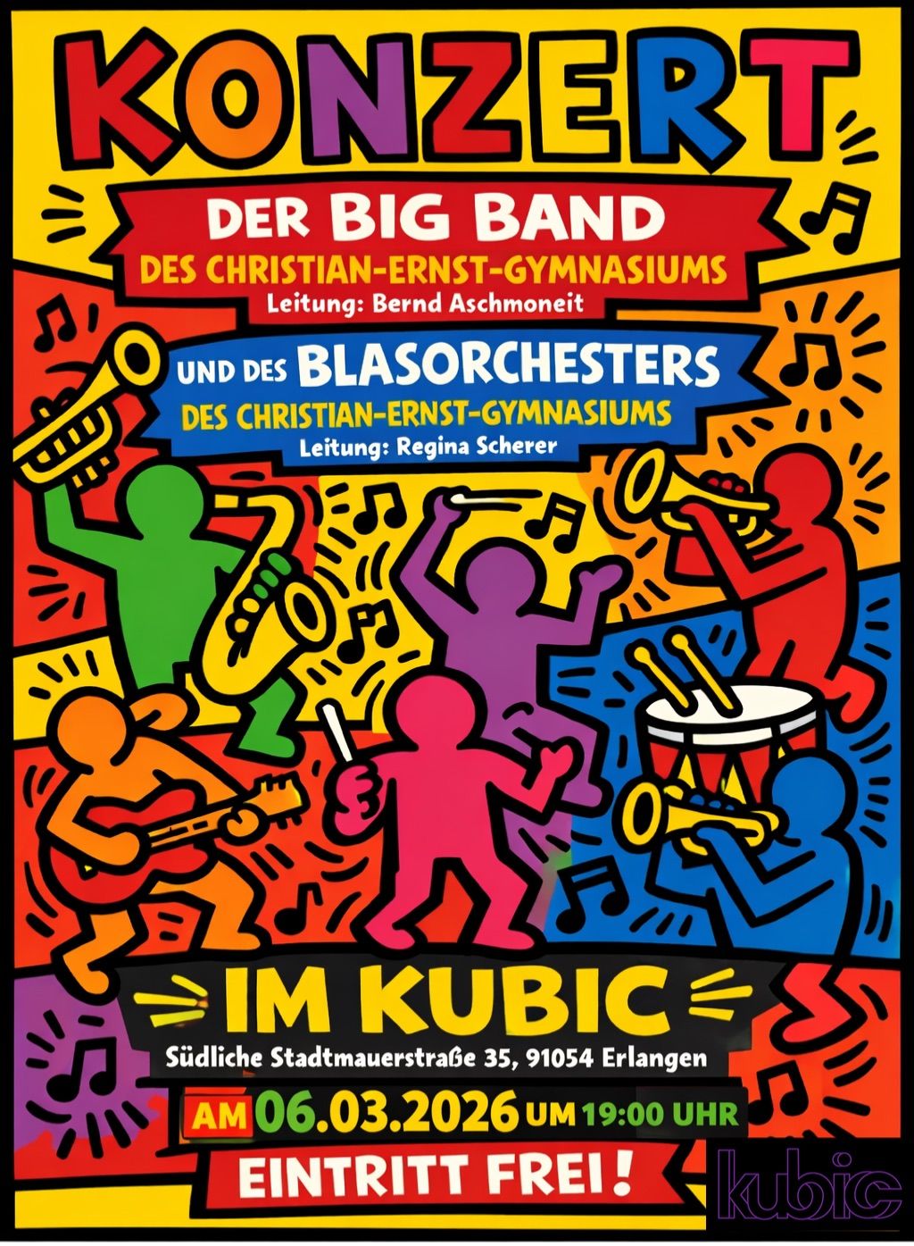 Konzert der BigBand und des Blasorchesters im Kubic am 06.03.2026 5.02.2026 | Big Band, CEG Aktuell, Fachschaft Musik Herzliche Einladung!