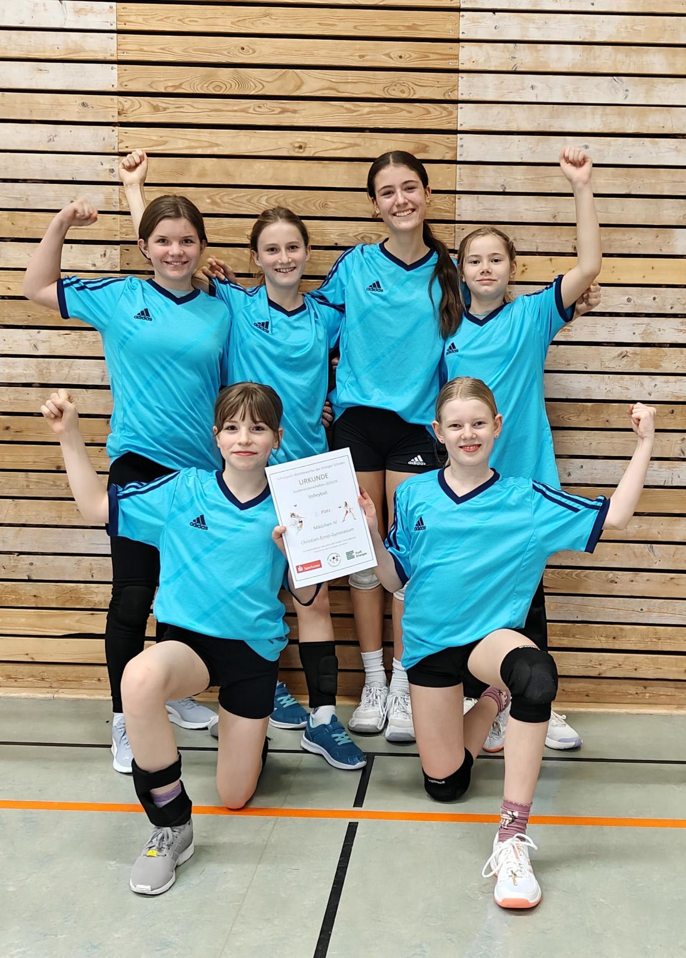 Unsere Volleyballerinnen der Jahrgänge 2013 und 2014 haben bei den diesjährigen Stadtmeisterschaften am 12. Februar 2026 erneut einen großartigen Erfolg gefeiert und den Stadtmeistertitel verteidigt. Mit konzentrierten Leistungen und großem Einsatz setzte sich unsere Mannschaft gegen die Teams des Emil-von-Behring-Gymnasiums Spardorf, des Emmy-Noether-Gymnasiums Erlangen sowie des Albert-Schweitzer-Gymnasiums Erlangen durch und gewann alle drei Begegnungen.